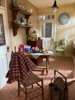 And the last thing I will share with you today is my Robin Betterley Liberty Bay shop (sorry it's a bad photo). I pulled it out after many years of sitting. It turns out there were only a few things left to do to finish it. I hadn't attached the box that sits inside the frame at the back to enclose it, and wondered where the heck those pieces would be. I had just finished reorganising my craft room, which is why I seized upon the shop in the first place, and I recalled seeing a little bundle of wood and acrylic bits and THEY WERE THE RIGHT ONES!!! Miracle of miracles as I seem to spend more time looking for stuff than doing any mini making.