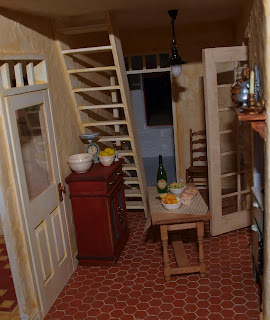 I have pretty much finished the kitchen I think, except for the addition of some very cute little crochet potholders I purchased. I need to make a little hook to hang one beside the stove.